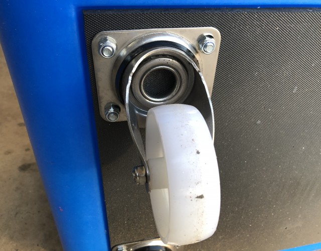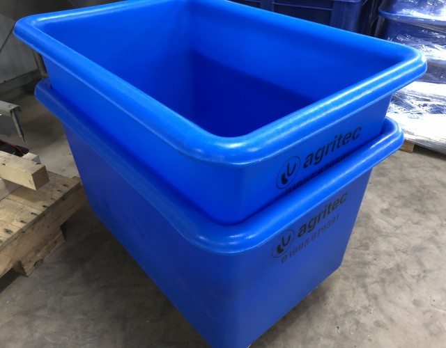Food Grade Medium Density Polythene Rotationaly Moulded Temperature range -20 to +60 degrees Smooth, easy clean surfaces,fitted with stainless castors 340 litre.
