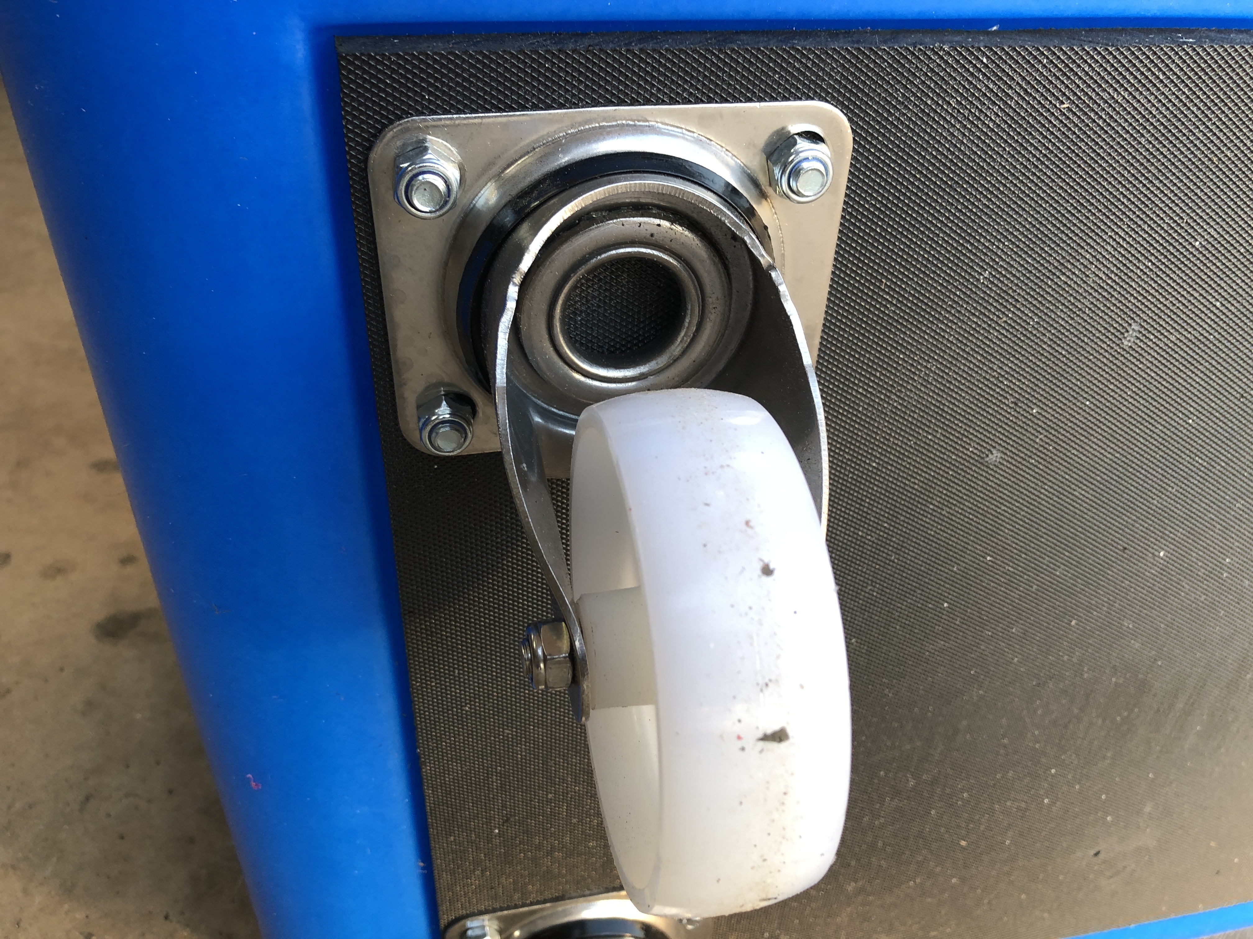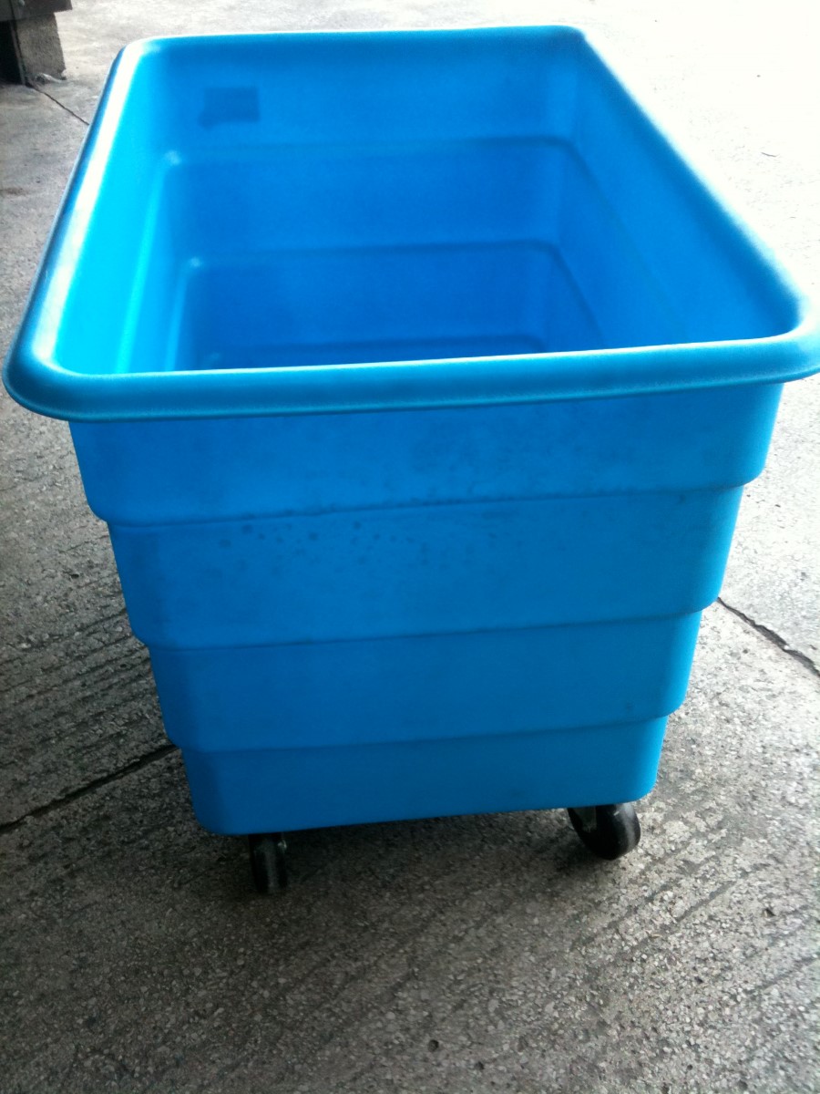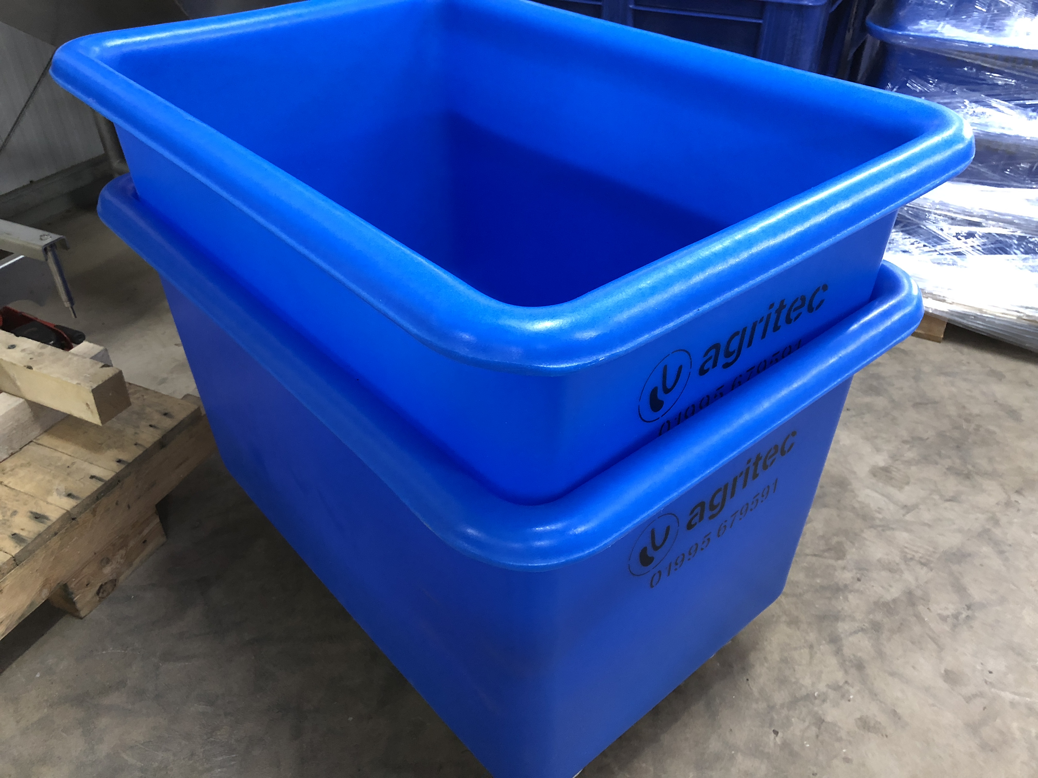 Food Grade Medium Density Polythene Rotationaly Moulded Temperature range -20 to +60 degrees Smooth, easy clean surfaces,fitted with stainless castors 340 litre.