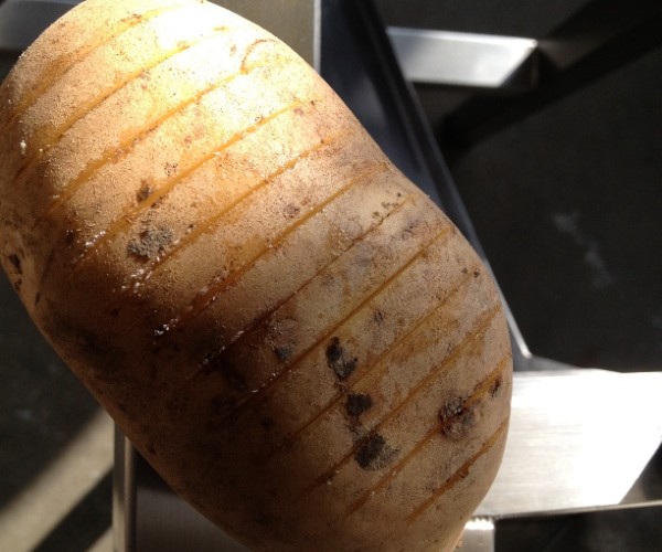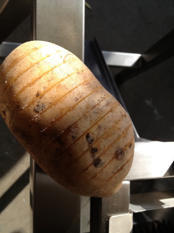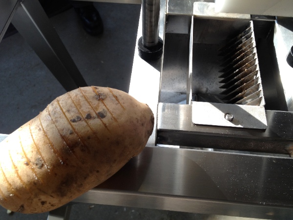 Create Hassleback potatoes with this new cutter. All stainless steel construction. Easily fitted to hand chipper machines.