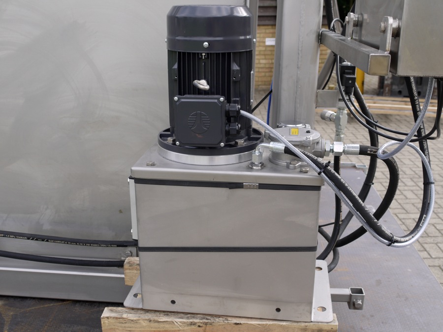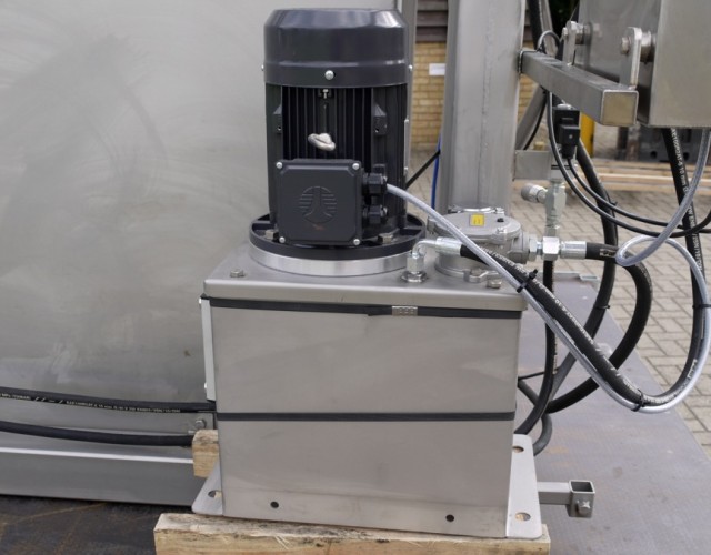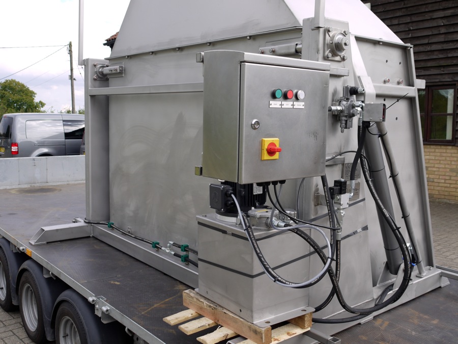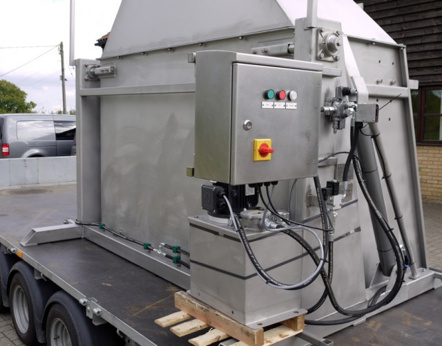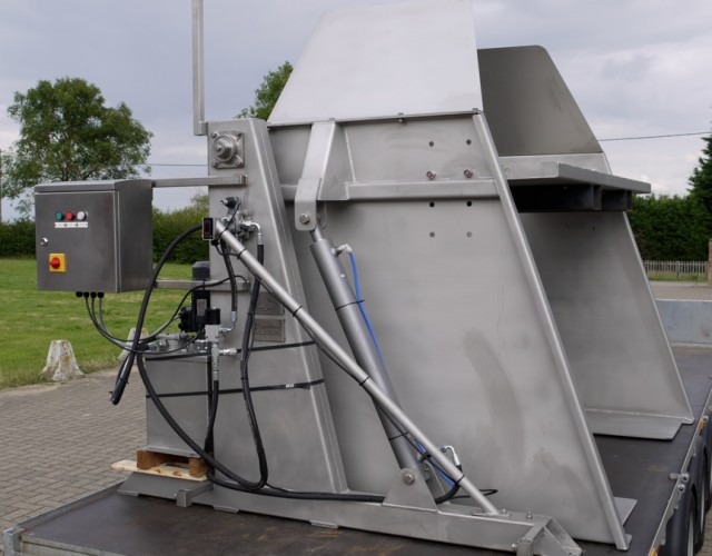 Manufactured to suit any size box with variable lid adjuster. Constructed in all stainless steel with a bead blast finish. Hydraulic pack and electric box can be fitted on any side of tipper to suit customer requirements.