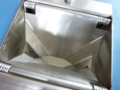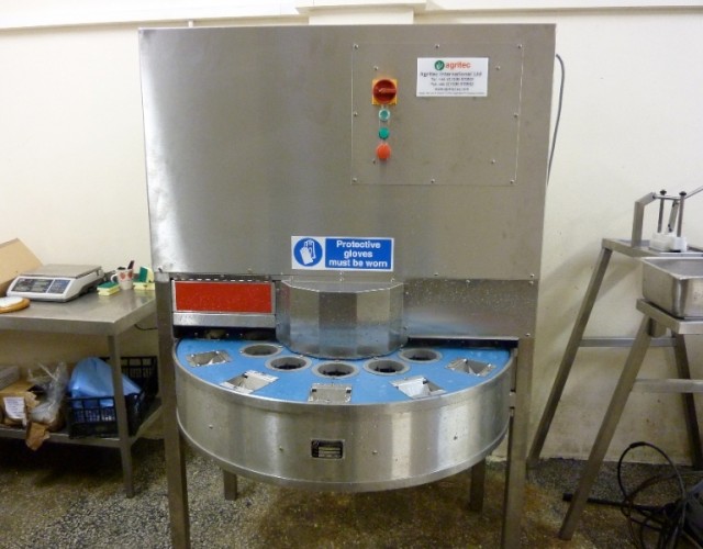 Capable of wedging sizes up to 100mm. Output – depending on size, max output 6500 pieces per hour for 3 lane and 4300 for 2 lane machines. 750-1000kg/hr. Stainless steel cups ensure correct and stable holding of product and makes blade change very quick and easy.