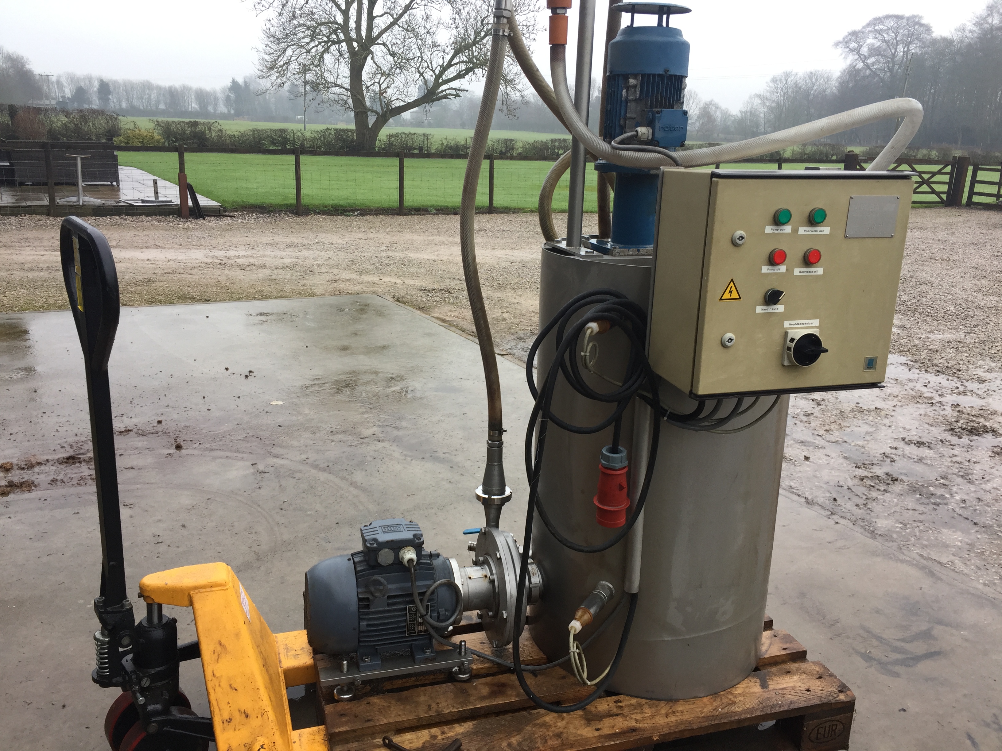 Complete with high and low monitoring sensors for full auto control. This unit works in partnership with the PCM/JDB/Agritec waste compactor which removes the gross solids first. Water which then leaves the compactor enters the hydro-cyclone and the starch is removed immediately.