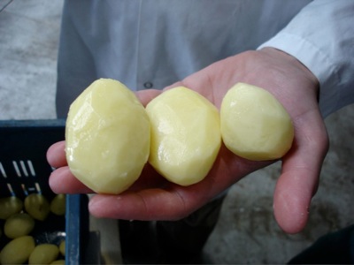 Stainless Steel potato batch peeler complete with knife plate. The skin finish with knife peeling is far superior than carborundam peeling. Knife peeling can offer an increase of product shelf-life.