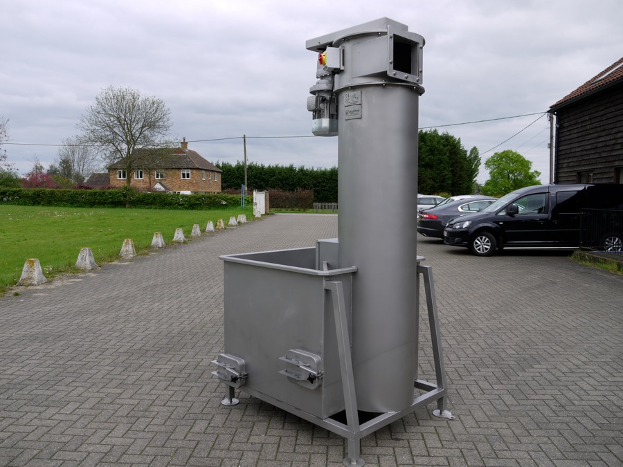 Vertical Screw De-stoner – can be manufactured with flange fitting or with chute to suit any application – ideal for feeding peeling equipment to prevent damage further down the processing line from stones and foreign bodies.